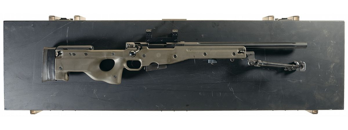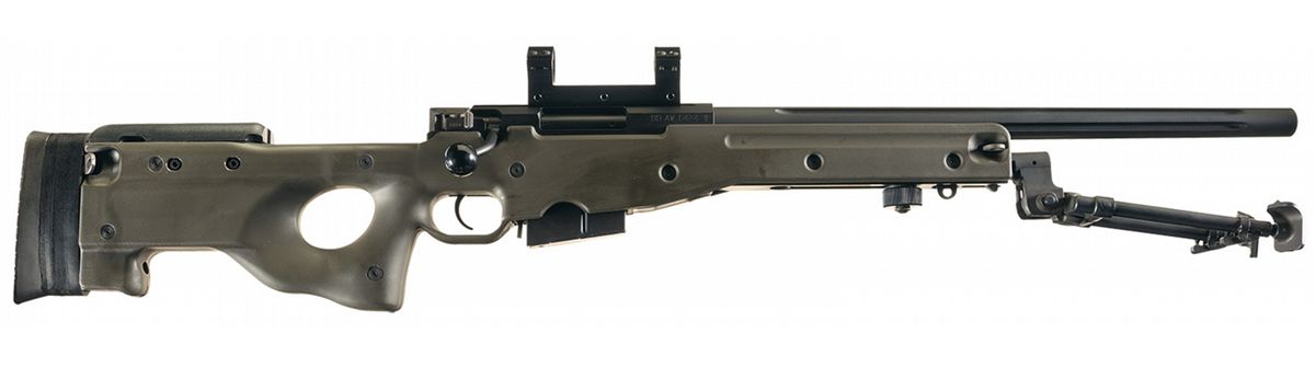 Developed in the 1990's as an evolution of AI's Precision Marksman Rifle, the Arctic Warfare is a purpose-built precision rifle, built around a permanently installed alloy stock chassis with polymer covers. With a hard metal case, quick-detach bipod, sling, scope lens hood, 4 extra magazines and cleaning tools.
