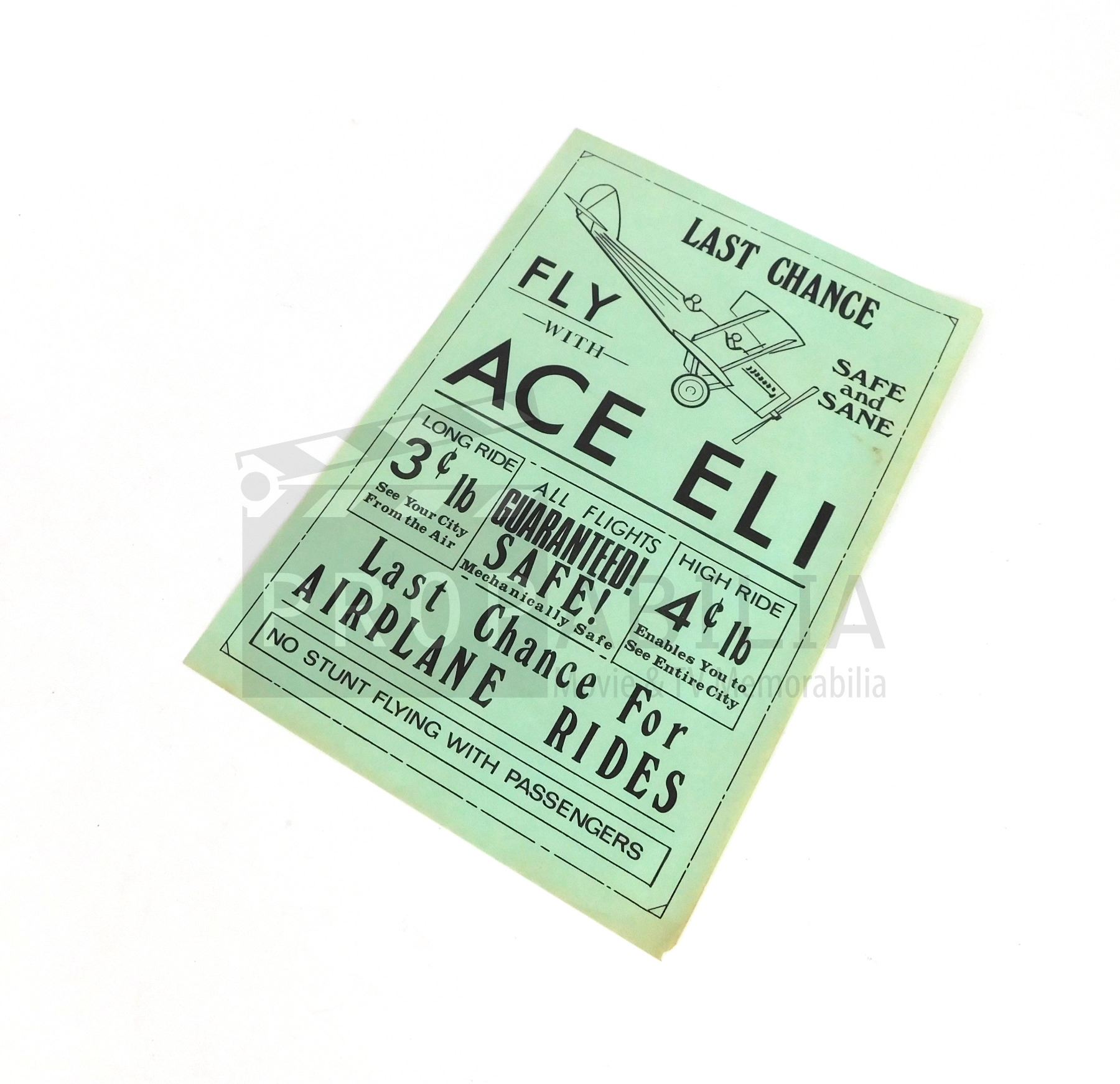 This flier was acquired by the production for use in 'Ace Eli and Roger of the Skies' (20th Century Fox, 1973).