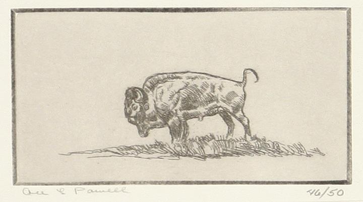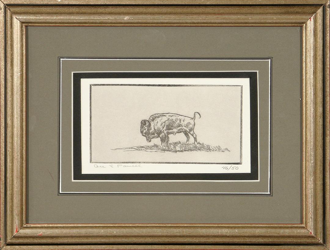 Ace Powell (1912-1978) Etching, Buffalo, #46/50, image size 3" x 5 5/8", pencil signed
