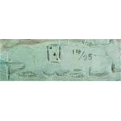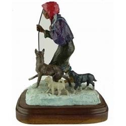 Ace Powell (1912-1978) (Montana) Cold Painted Bronze. "Dog Woman." #14/35. 12" Tall x 8.5" Long. signature inscribed. Posthumous, Kalispell Art Castings. Estimate $1,500 - $2,000.