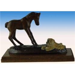 Ace Powell. (1912-1978) (Montana) Bronze. "Surprise." #40/100. 6.25" Tall x 8.5" Wide. Posthumous. Powell. Art Castings. signature inscribed. Est $500 - $750.