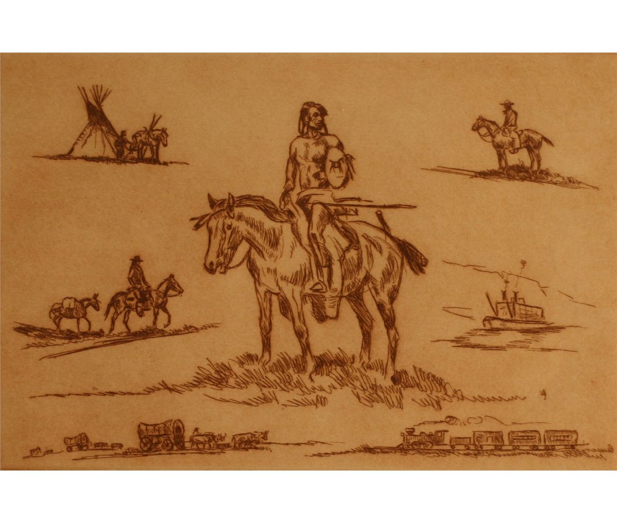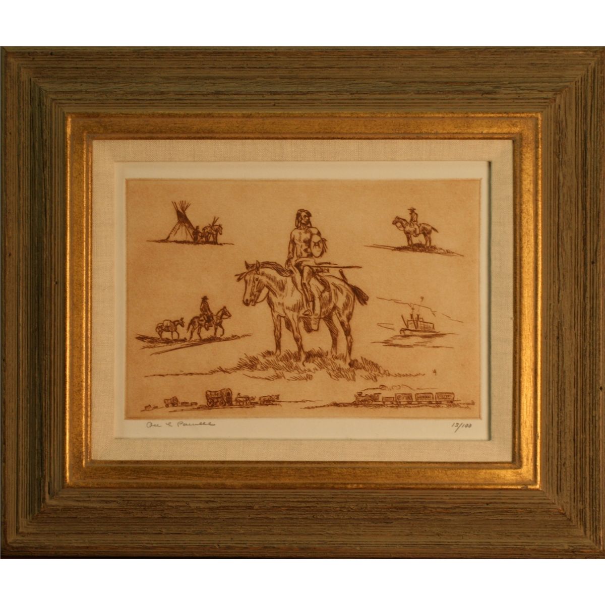 Ace Powell, Etching, "Frontier Days", 7-1/2" x 11", Pencil signed lower right, 13/100, -157108-
