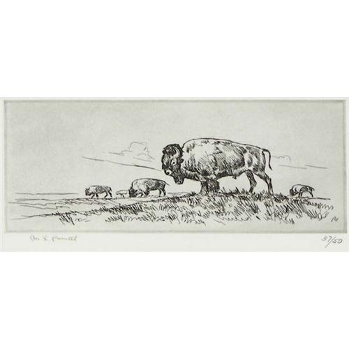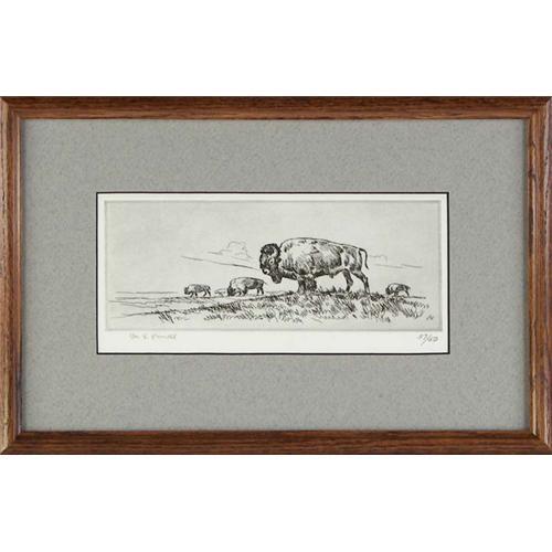 Ace Powell (1912-1978) (Montana) Etching, "Herd Bull", #37/50, image size 4" x 9 7/8", pencil signed