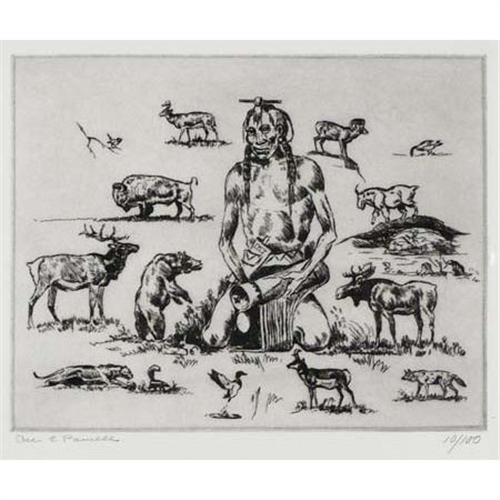 2328 Ace Powell (1912-1978) Etching Indian Thoughts 10/100 Signed lower left 7 3/4" x 9 3/4"