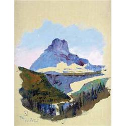 Ace Powell (1912-1978). Oil Sketch on Board. "Chief Mountain, Montana."14" x 11". Framed. Estimate $250 - $500.