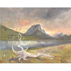Ace Powell. (1912-1978) (Montana). Oil on Board. Chief Mountain. 16" x 20". Framed. Estimate $2,000 - $3,000.