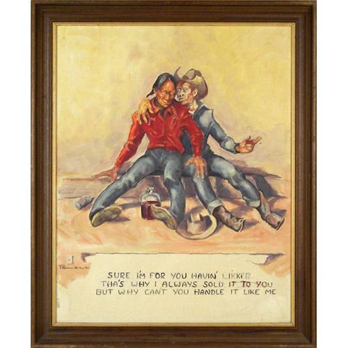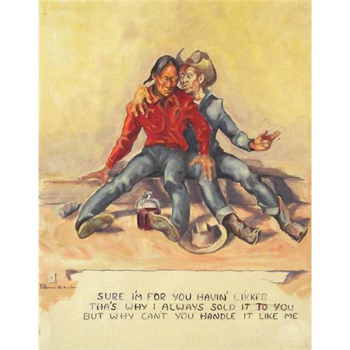 Ace Powell (1912-1978) Oil on Board, "Sure I'm for yu havin' likker, tha's why I always sold it to you, but why can't you handle it like me", 20" x 16", signed lower left