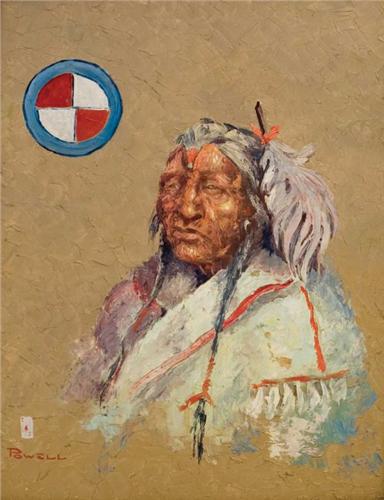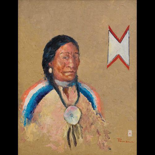 Ace Powell (1912-1978). Pair of Oils on Board. 1. 20" x 16'. "Blackfoot Chief's Wife". Signed LR. 2. 20" x 16". "Blackfoot Chief".Signed LL. (est $3,000-4,000). Provenance: MAC Museum, Spokane, Washington.