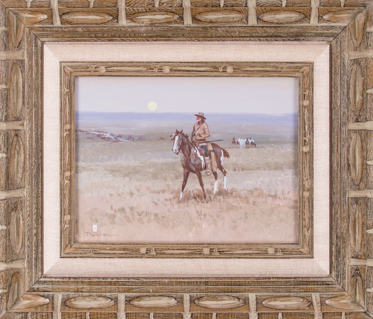 Ace Powell (1912-1978). Mountain Man. 12" x 16" oil on canvas. Signed lower left. Verso: "See you next year, Gust & Armeda Anderson, Sincerely, Powell."