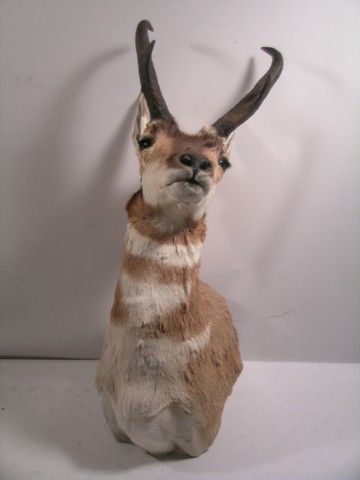 A stuffed antelope head that was used in the production of Ace Ventura: Pet Detective, the 2004 screwball comedy starring Jim Carrey. This is a background prop, and fine attention to detail has been paid in its construction. Soft, replicated fur and hard antlers help this piece of mise-en-scene really shine. On the back, the number, "1140" is written. Oversized item. Additional postage required. (Measures approx. 20" x 11" x 32")
