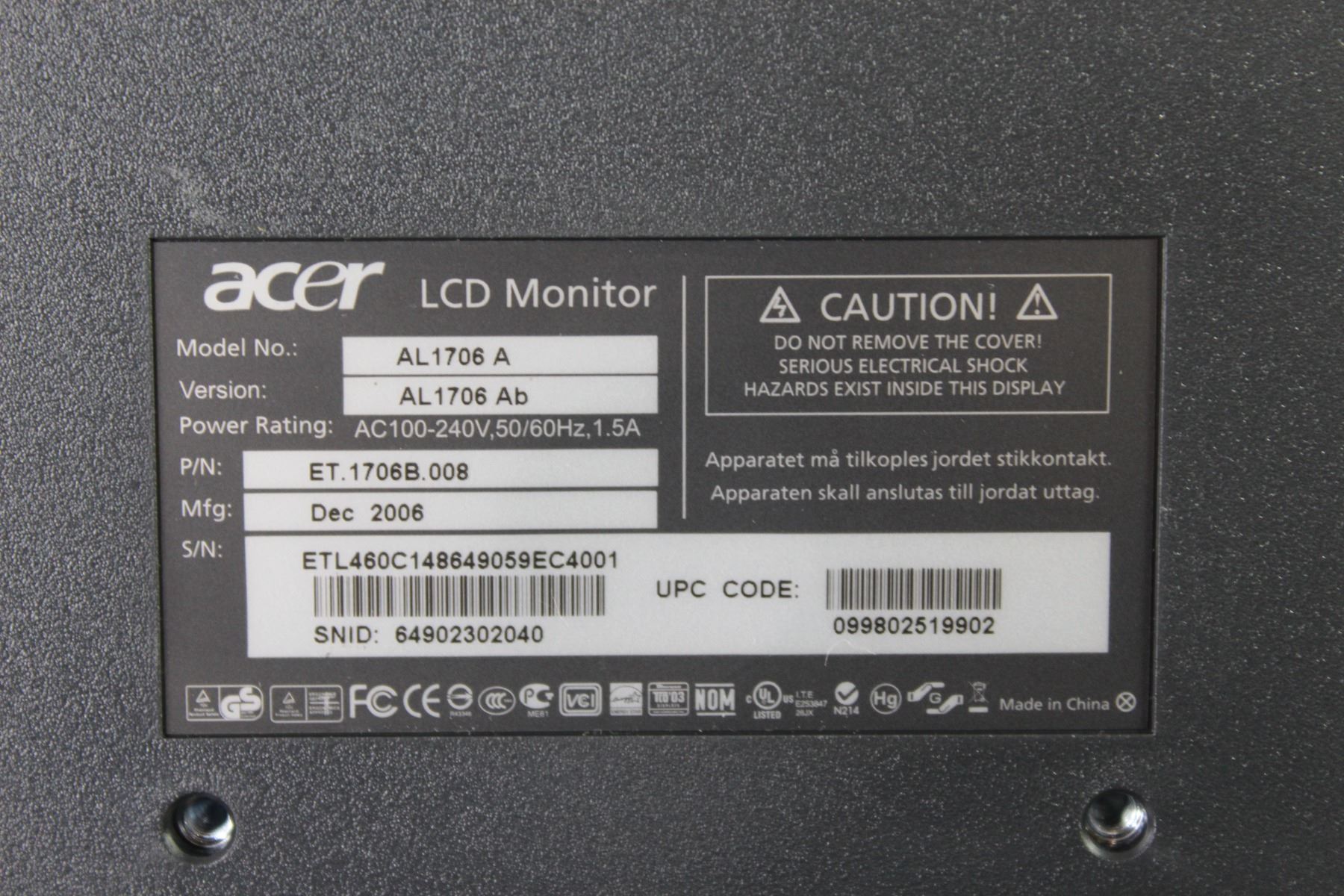Acer Monitor (unknown condition)