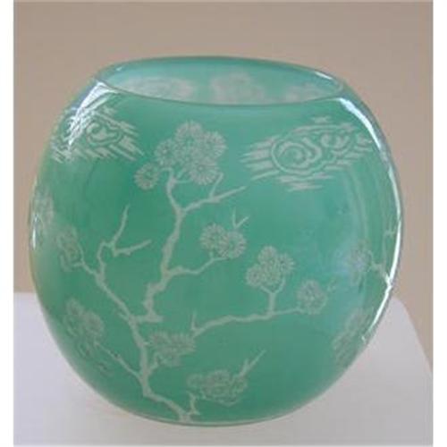 <tr><td><font size="2" face="Arial, Helvetica, sans-serif"><strong><font color="#000033">Title:</font></strong>Acid Cut Steuben Jade Vase In Matsu Pattern</font></td></tr>