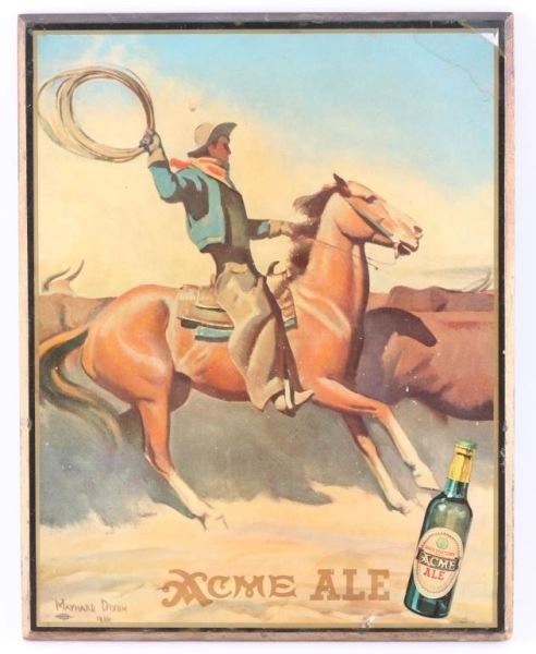 San Francisco with art by Maynard Dixon of cowboys herding steers made by crystal plaque Arlington NJ dated 1926, 11 1/4"x9", minor damage to edges and corners.