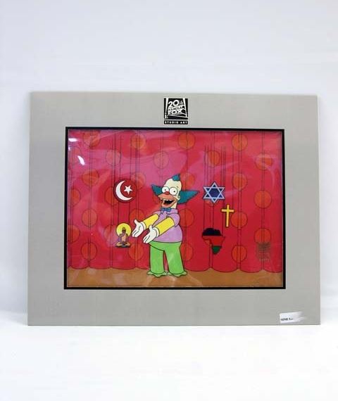 "The Simpsons" original hand-painted cel set up used for production. Comes with certificate of authenticity. (approx. 15" x 12")