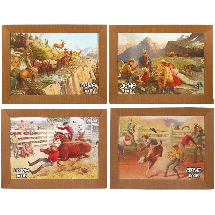 Acme Cowboy Boots self-framed cdbd signs (4), all Exc cond & 18"H x 24"W.