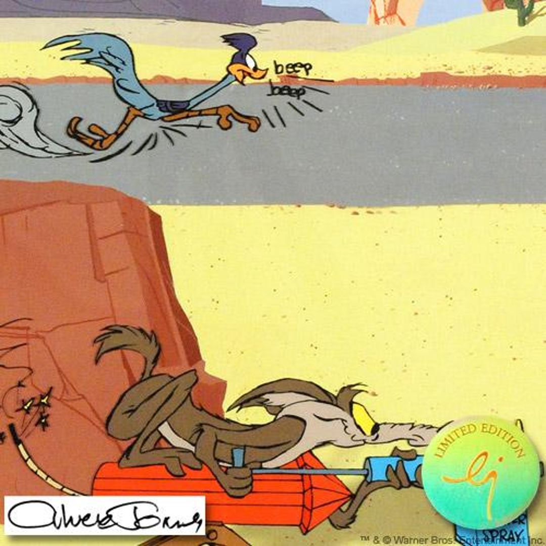 Own this amazing piece based on the original line image hand drawn and hand-inked on paper by Mr. Jones! "Acme Road Runner Spray" is a sold out limited edition animation cel from the AP edition with hand painted coloring on sericel outline, numbered and hand signed by Chuck Jones (1912-2002)! Includes Certificate of Authenticity! Measures Approx: 16.5" x 13.5".