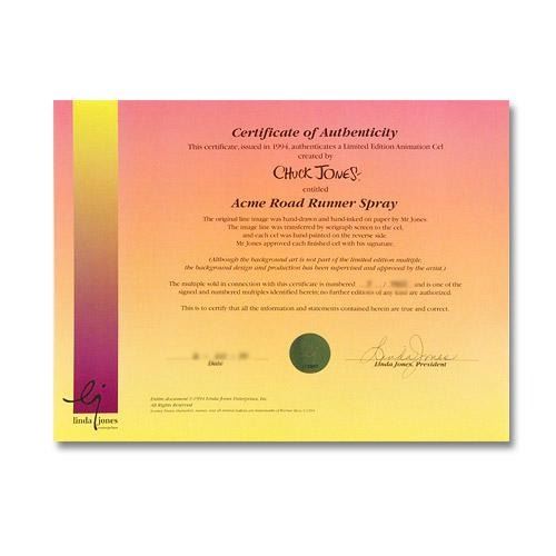 Own this amazing piece based on the original line image hand drawn and hand-inked on paper by Mr. Jones! "Acme Road Runner Spray" is a sold out limited edition animation cel with hand painted coloring on sericel outline, numbered and hand signed by Chuck Jones (1912-2002). Includes Certificate of Authenticity! Measures Approx: 16.5" x 13.5".