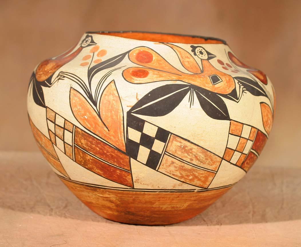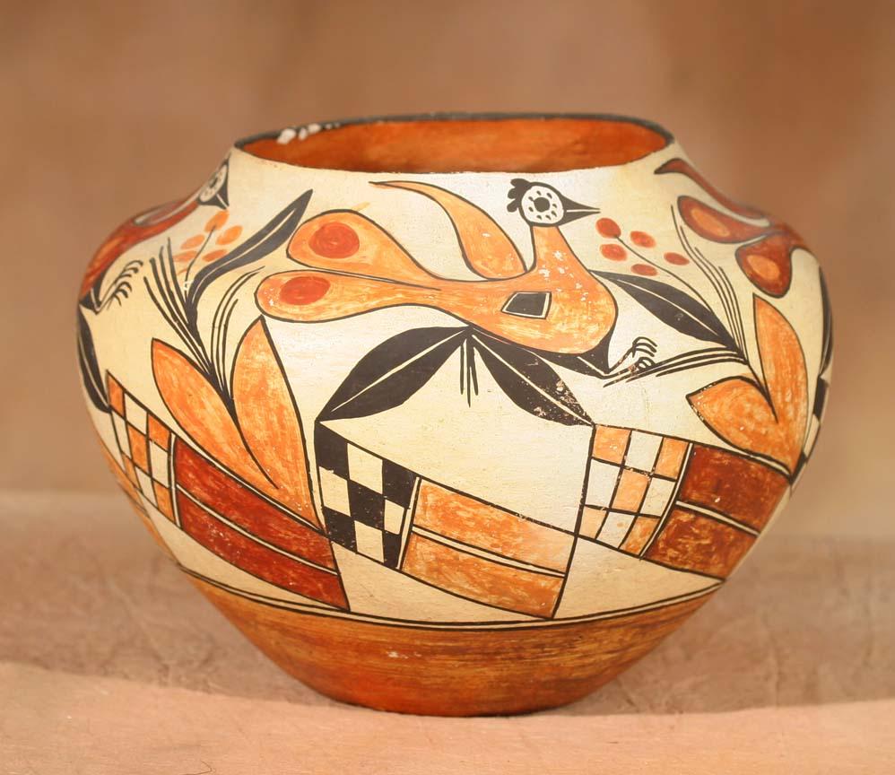 Acoma Bird Jar. 7 ¾" x 8 ¼". Polychrome . Circa 1910-1925. (est $1,000-3,000). Provenance: Bethany College, Lindsborg, KS. For condition reports please visit: www.auctioninsantafe.com/cr2011.pdf