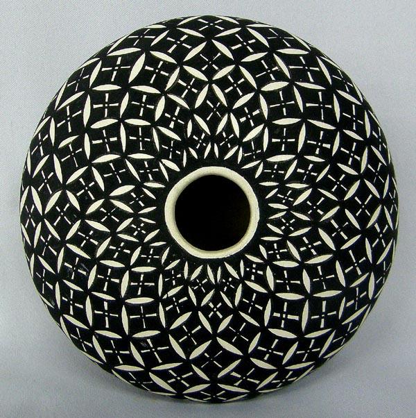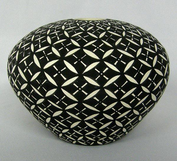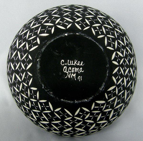 Acoma Black & White Seed Jar by C W Kee. Signed on bottom, ''C W Kee, Acoma, NM '91.'' Measures 4''x5.5''. SHI $20.