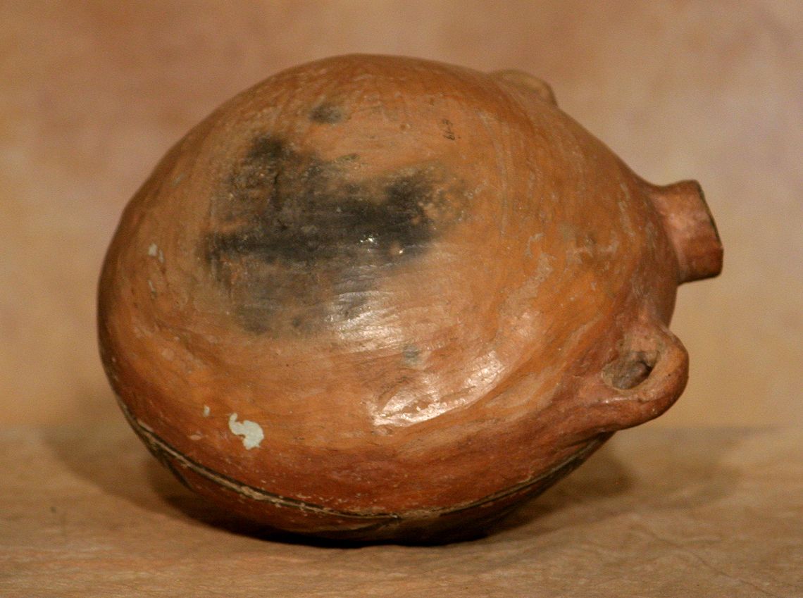 Acoma Canteen. 8 ½" x 7" x 8". Polychrome painted floral design. Early 1900s. (est. $1,000-1,500). CONDITION REPORTS: www.auctioninsantafe.com/docs/cr2012.pdf