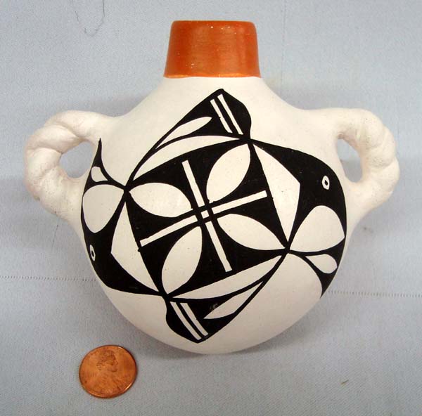 Native American Acoma Canteen. Unsigned. Measures approx. 4''H x 4 1/3''W. Buyers Pay Actual Shipping and Handling Charges(see terms and conditions for more information).