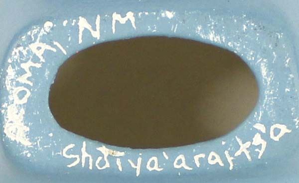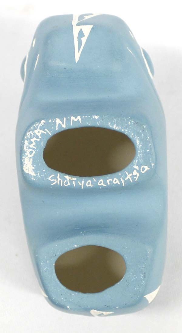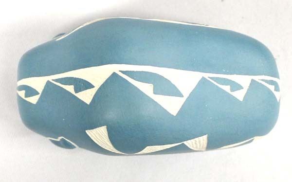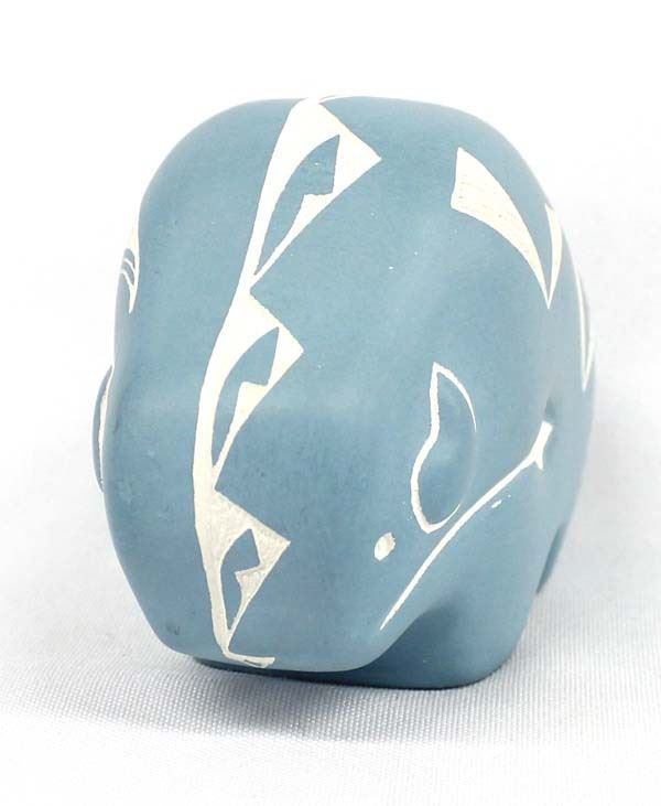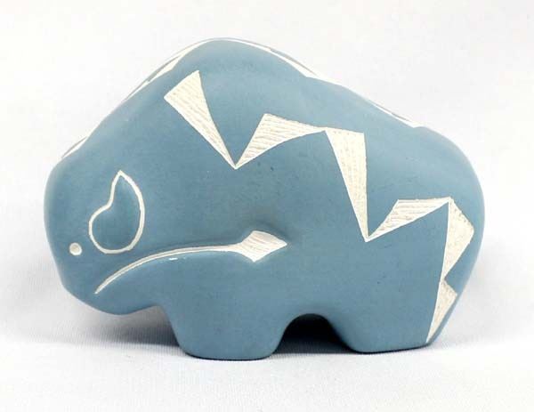 Native American Acoma Carved Ceramic Buffalo Pottery by Shdiya'arajts'a, measures 2.75''H x 4.5''L x 2''W, signed on the bottom