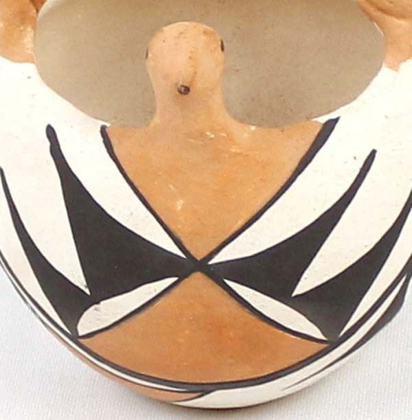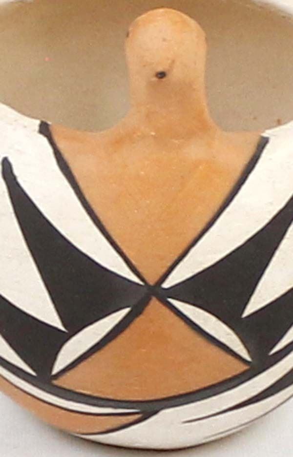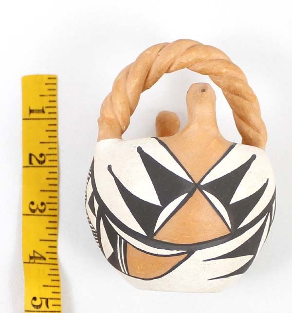 Native American Acoma Double Bird Pottery Basket by Doris Patricio (b. 1944), measures 3'' x 5'' and is signed on the bottom