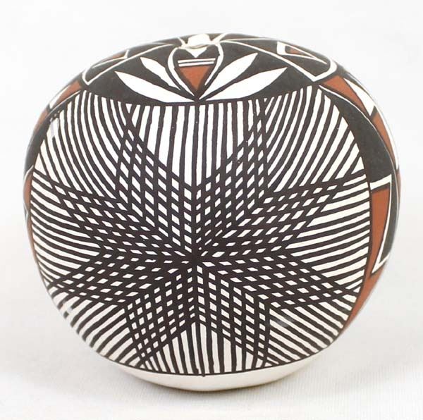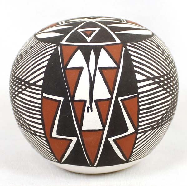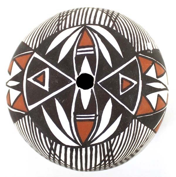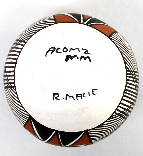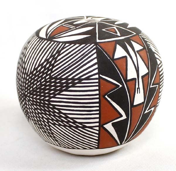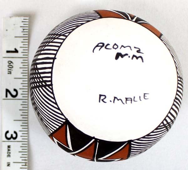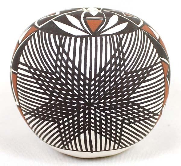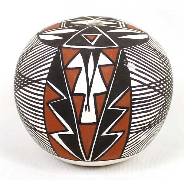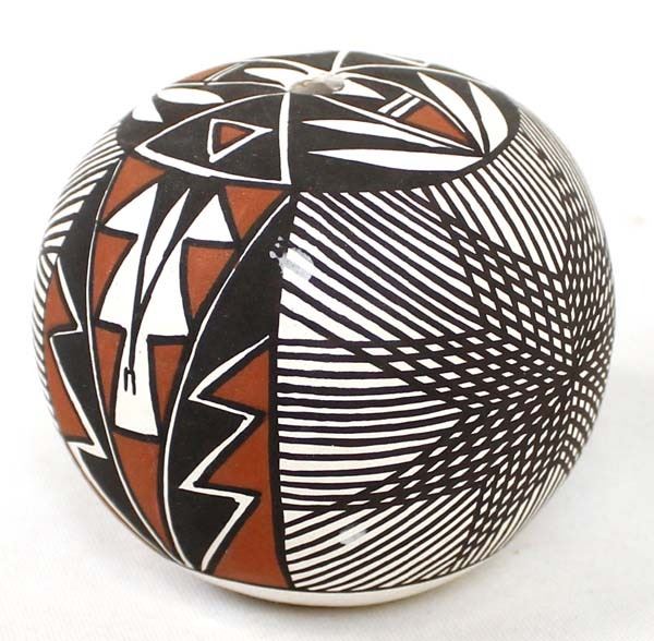 Native American Acoma Eye Dazzler Pottery Seed Jar by Rita Malie, measures 3'' x 3.5'' and signed on the bottom, polychrome, beautiful lines and designs