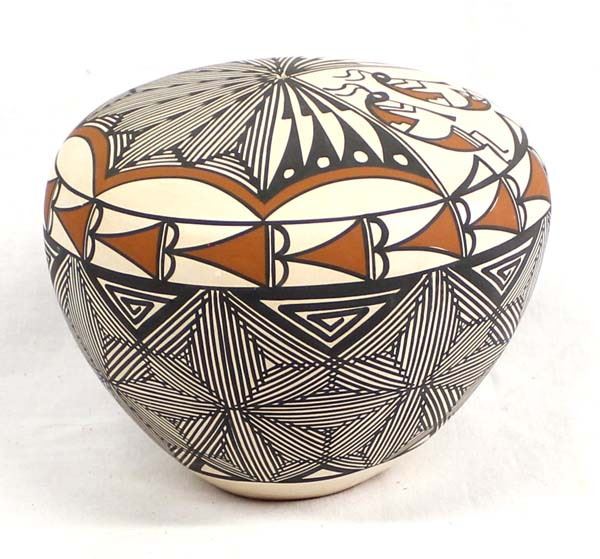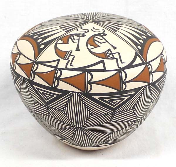 Acoma Fine Line Pottery Seed Jar by Iona K. Chino,  measures 6'' x 5'' and is signed on the bottom, Kokopelli Motif, Beautiful Seed Jar