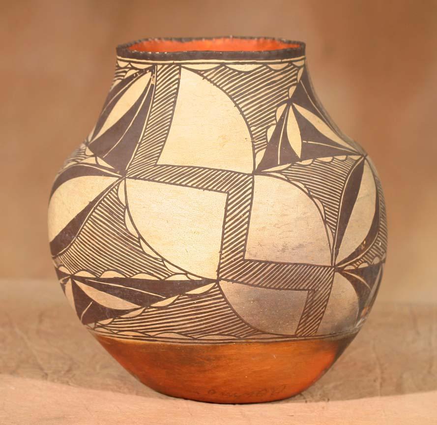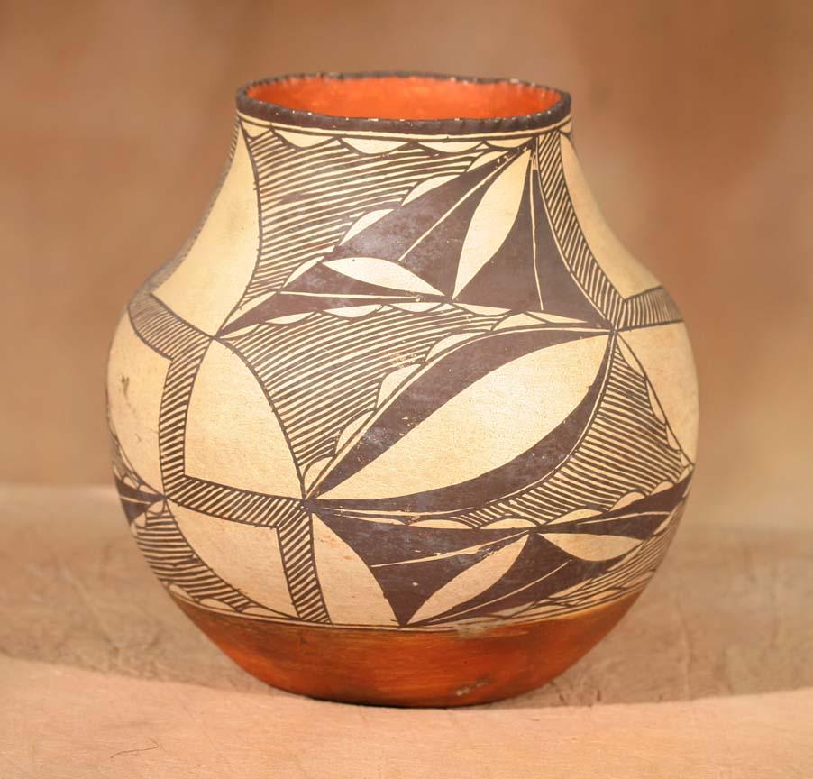 Acoma Jar. 8 ½" x 7 ½". Black on white. Circa 1900. (est $1,500-2,500). Provenance: Bethany College, Lindsborg, KS. For condition reports please visit: www.auctioninsantafe.com/cr2011.pdf