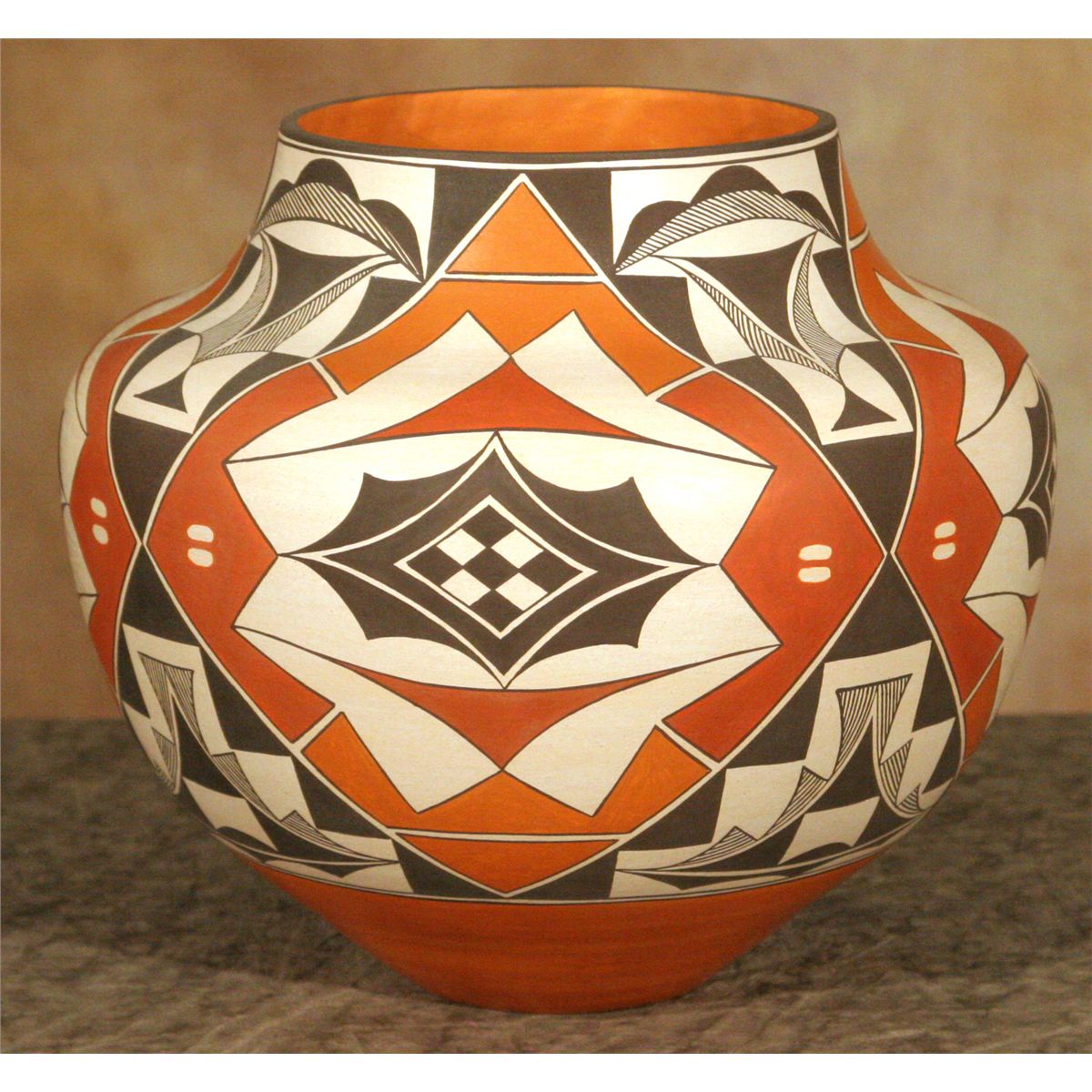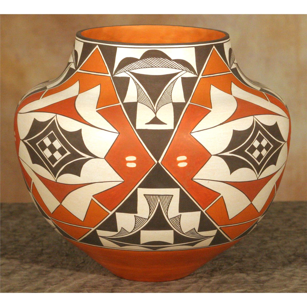 Acoma Jar by Barbara Cerno (1951 - ) and Joseph Cerno (1947 - ). 11" x 12". Geometric, polychrome design. Signed: ACOMA, NEW MEXICO, BARBARA and JOSEPH CERNO, 2006.
