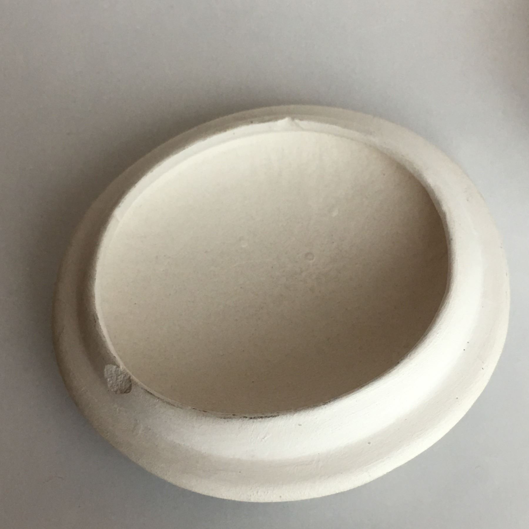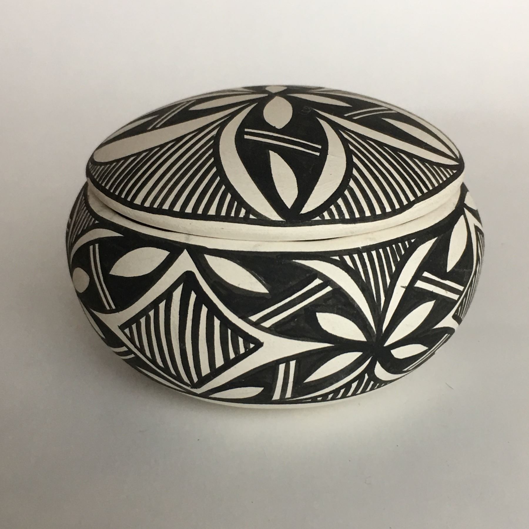 2.5'' high and is 3.75'' in diameter. small chip on the underside of the lid.