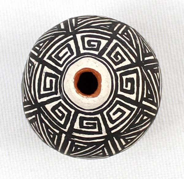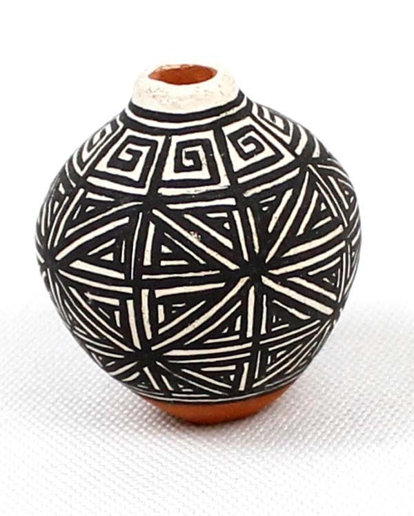 Native American Acoma Miniature Eye Dazzler Pottery Jar by Alberta Analla, measures 1'' x 1'' and is signed on the bottom, Alberta is known for working in miniatures and small storytellers.