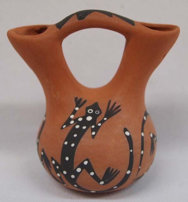 Acoma Miniature Lizard Wedding Vase by B. Curley, measures 3''H x 2.5''W, signed on bottom Acoma B. Curley