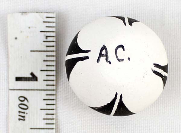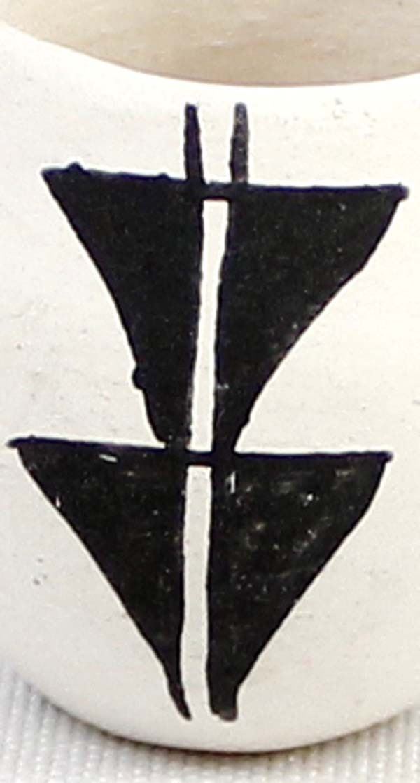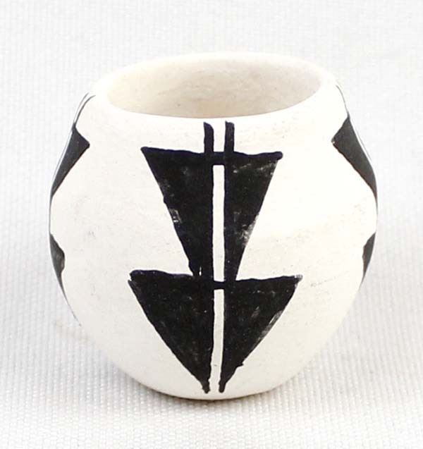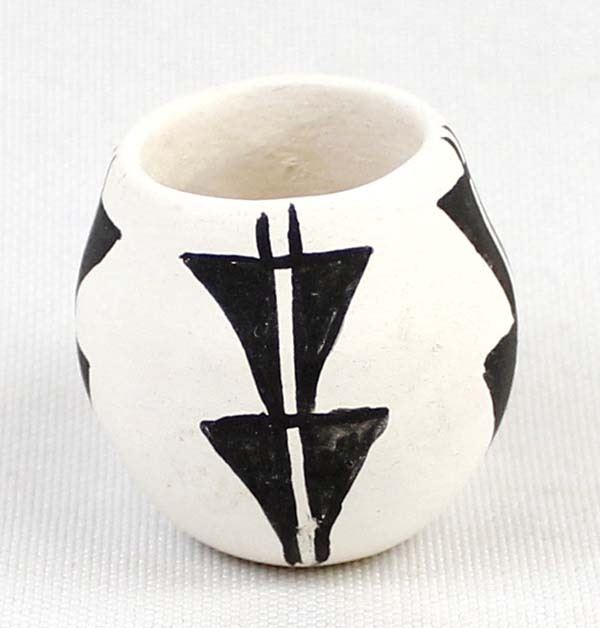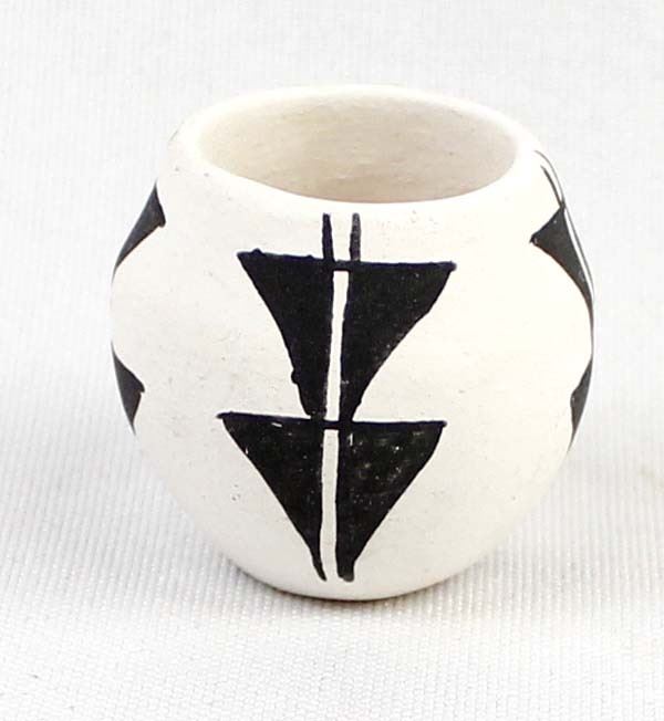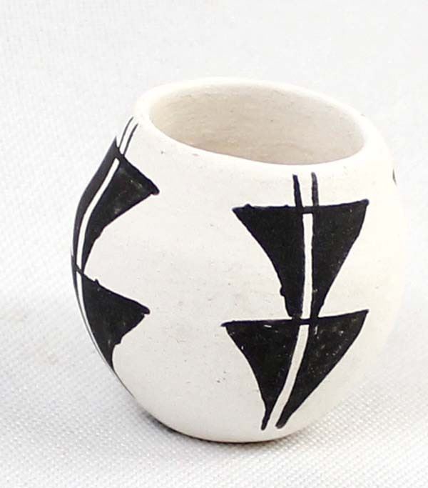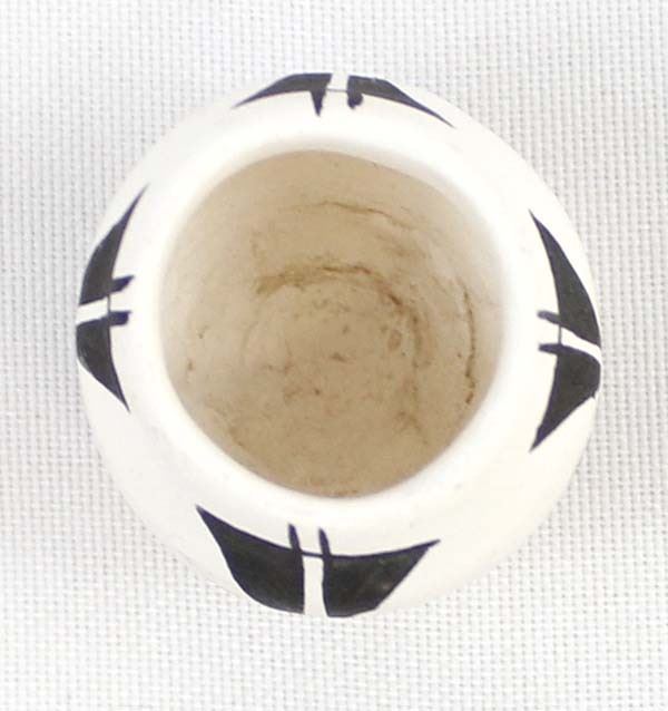 Native American Acoma Miniature Pottery Bowl, measures 1.5'' x 1.25'' and has the artist's initials on the bottom A.C.