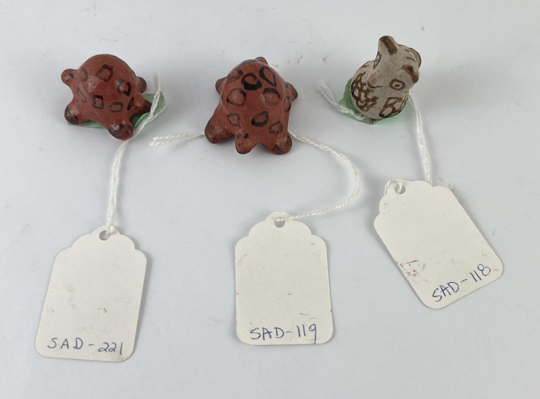 Nice grouping. Two turtles and an owl. Allard Auction Collection Inv: SAD