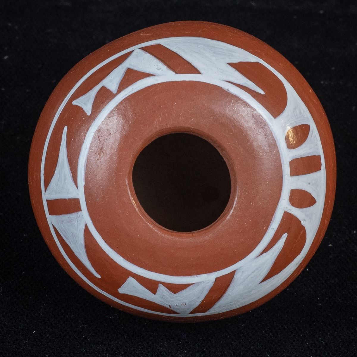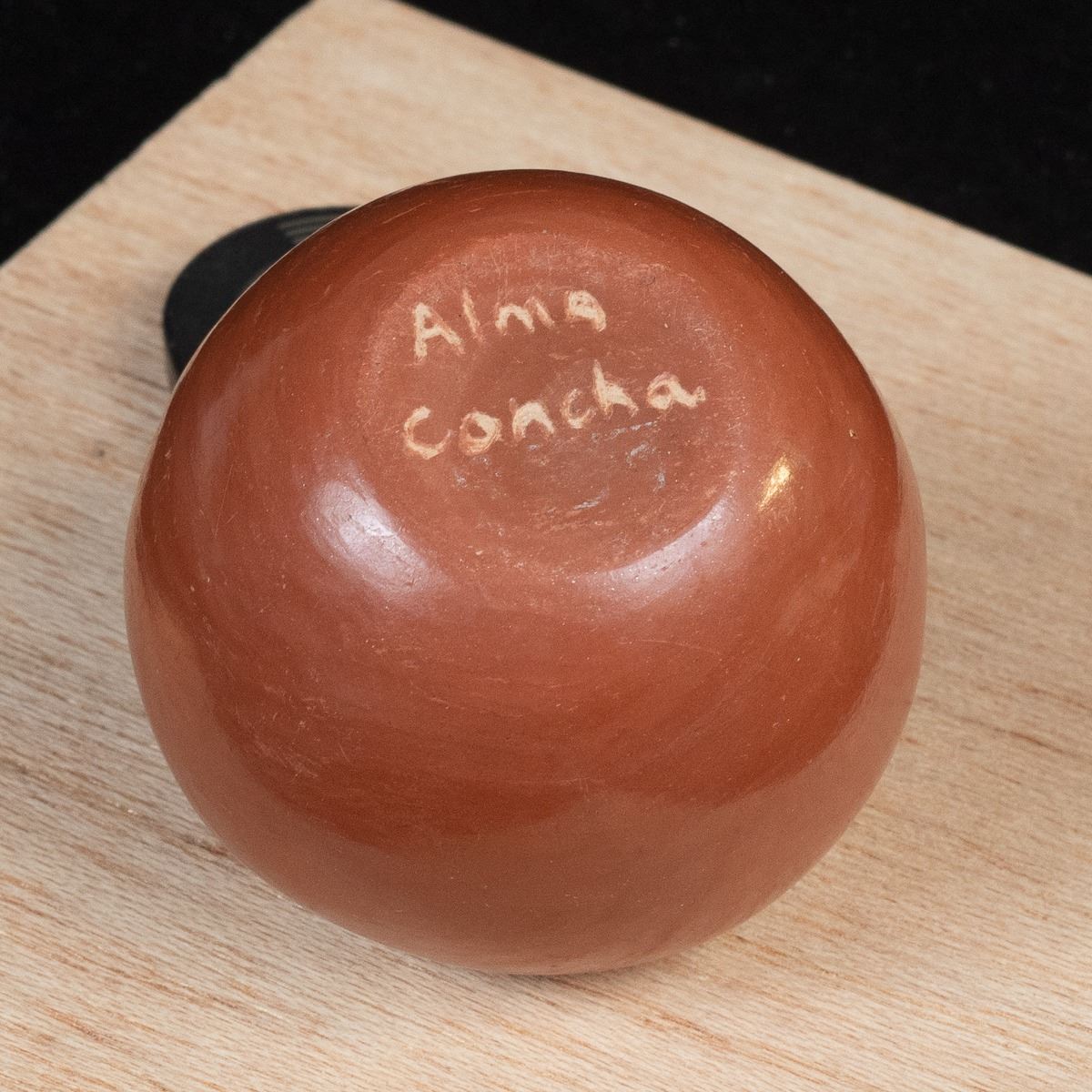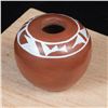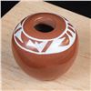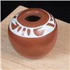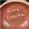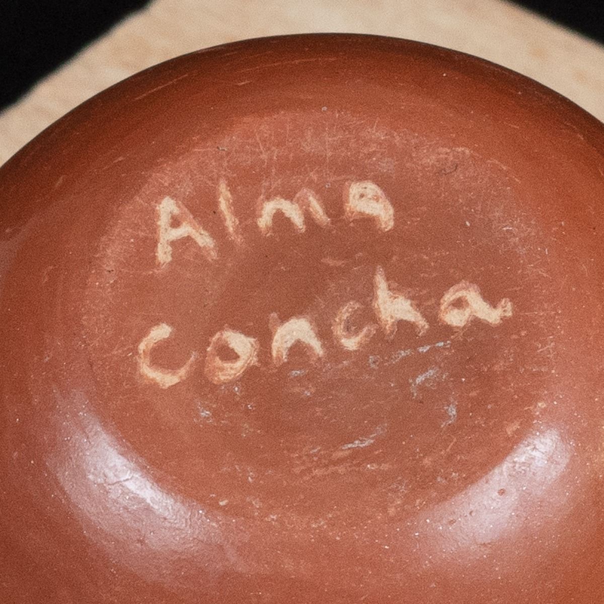 Native American Acoma Miniature Pottery Seed Jar by Alma Concha, measures 2'' x 2'' and is signed on the bottom, FYI: ''Laguna, Taos and Jemez Pueblo artist Alma Loretto Concha (b. 1941) is an award-winning pottery storyteller artist. She learned the art of pottery making from her mother, Carrie Reid Loretto, a respected pottery artist.''