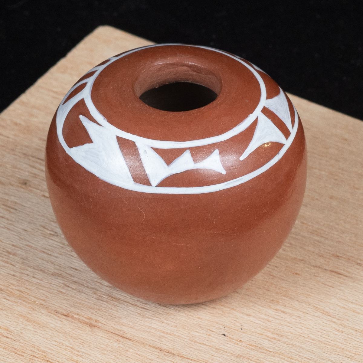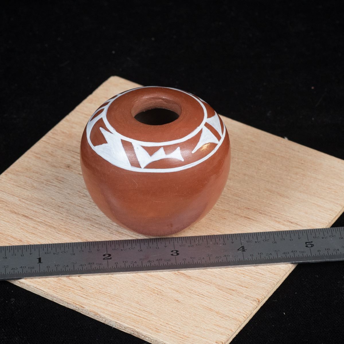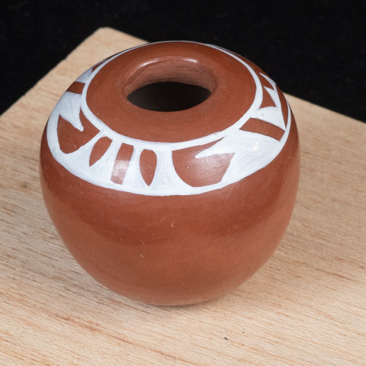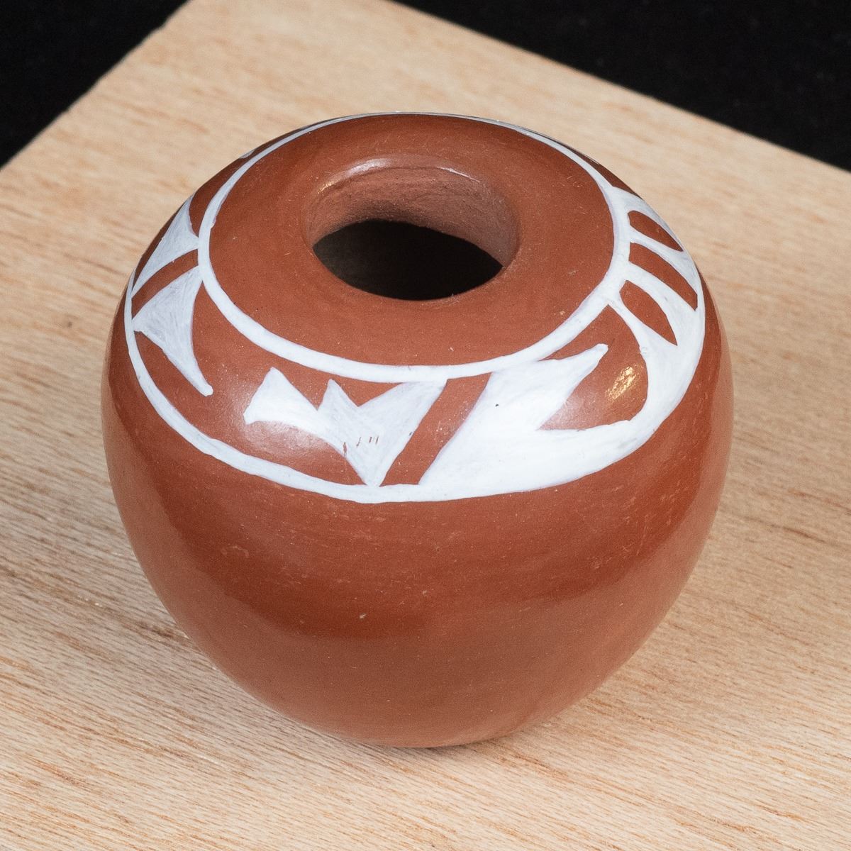 Native American Acoma Miniature Pottery Seed Jar by Alma Concha, measures 2'' x 2'' and is signed on the bottom, FYI: ''Laguna, Taos and Jemez Pueblo artist Alma Loretto Concha (b. 1941) is an award-winning pottery storyteller artist. She learned the art of pottery making from her mother, Carrie Reid Loretto, a respected pottery artist.''