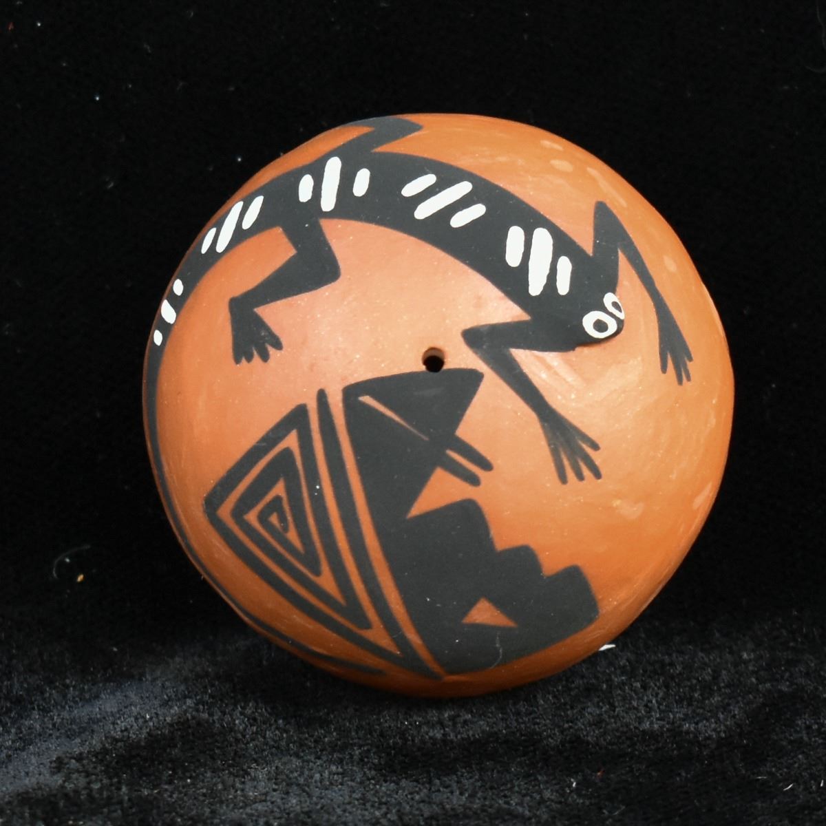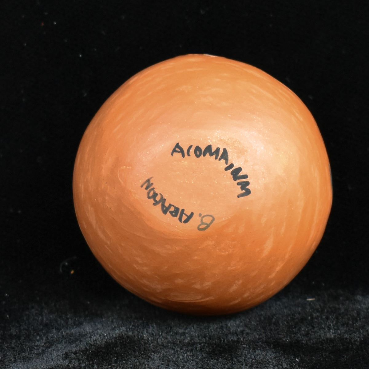 Native American Acoma Miniature Pottery Seed Jar by B. Aragon, measures 1.25'' x 1.75'' and is signed on the bottom, lizard motif, lizard's head is 3 dimensional