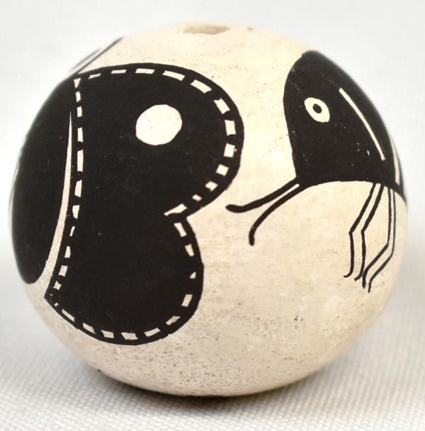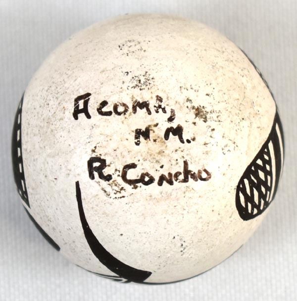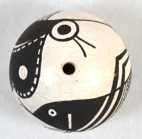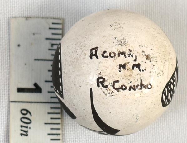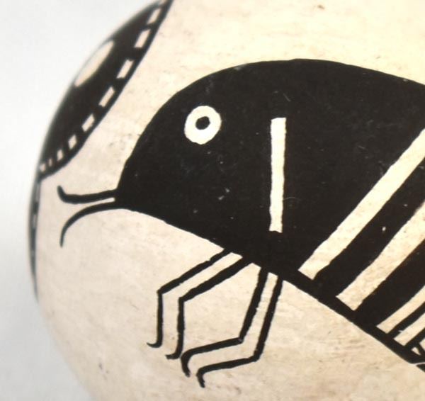 Native American Acoma Miniatures Pottery Seed Jar by Rachel Concho, measures 1'' x 1'' and is signed on the bottom, features Mimbres designed insects