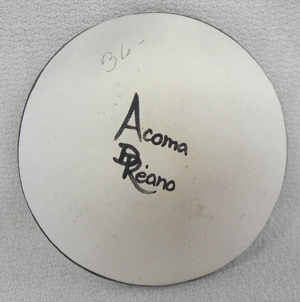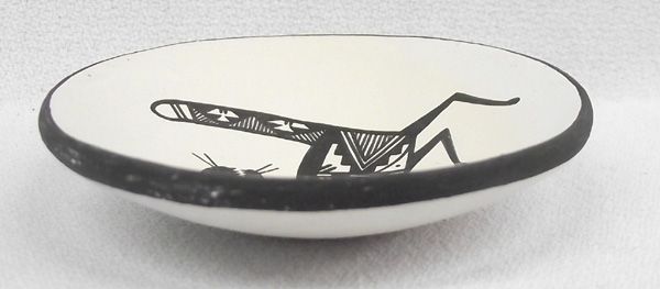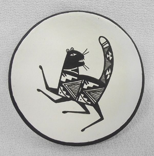 Acoma Mountain Lion Miniature Dish -- D. Reano, Mimbres Design Inspired, signed on bottom Acoma D. Reano, measures .5''H x 2.25''D, traditional black on white