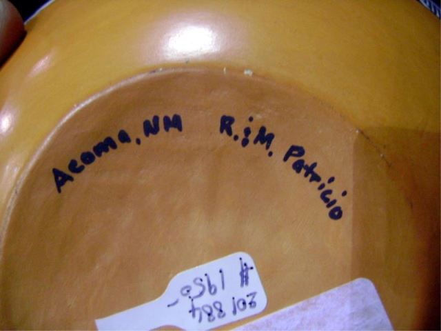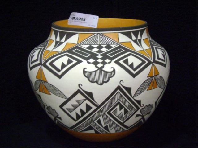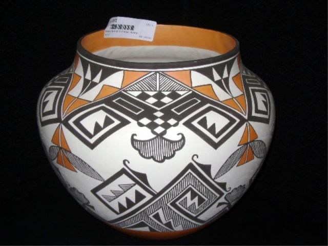 Acoma Olla Pottery Vase by R&M Patricio Acoma, New Mexico 9" high x 9 3/4" diameter, orif at 6 1/2"