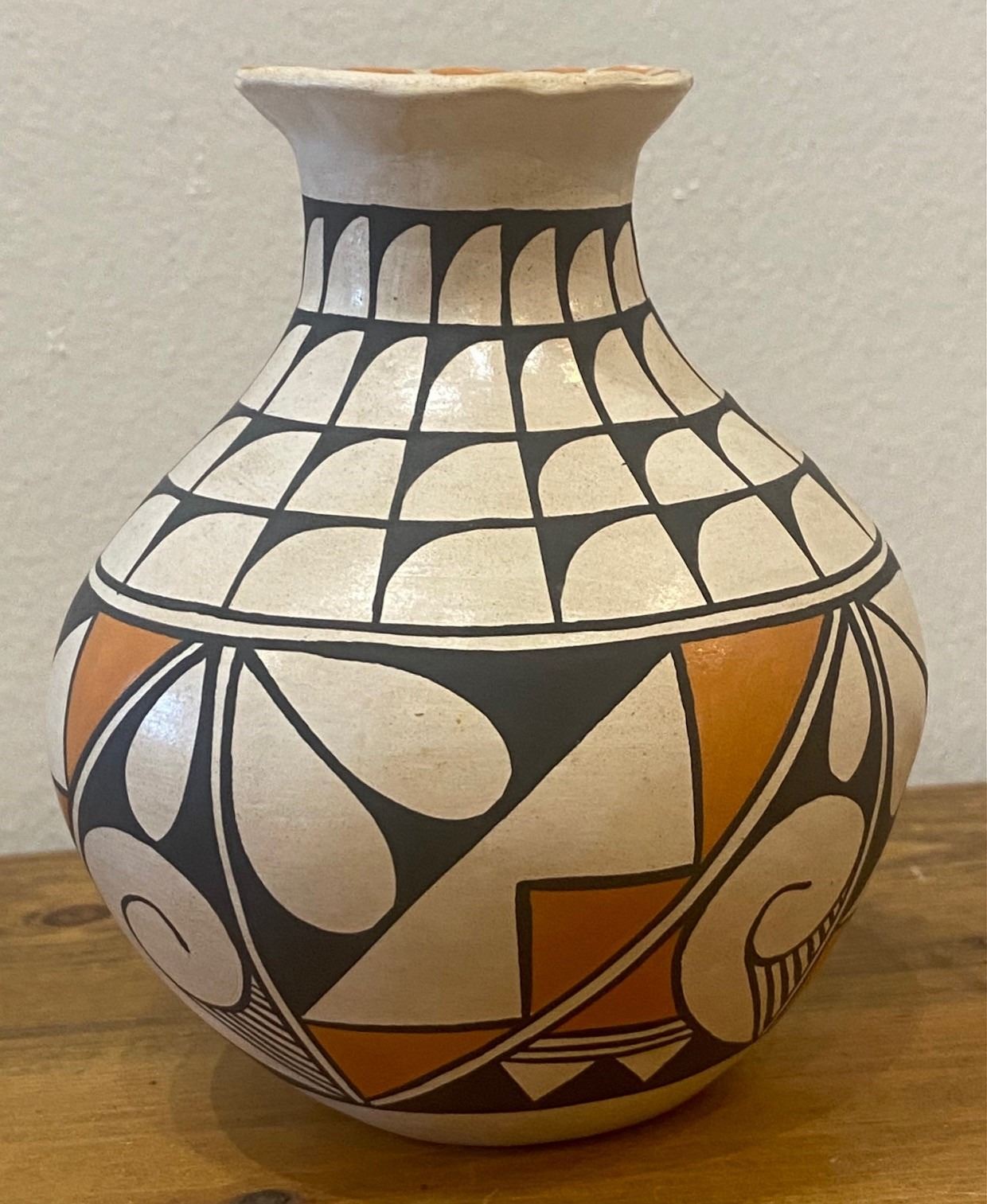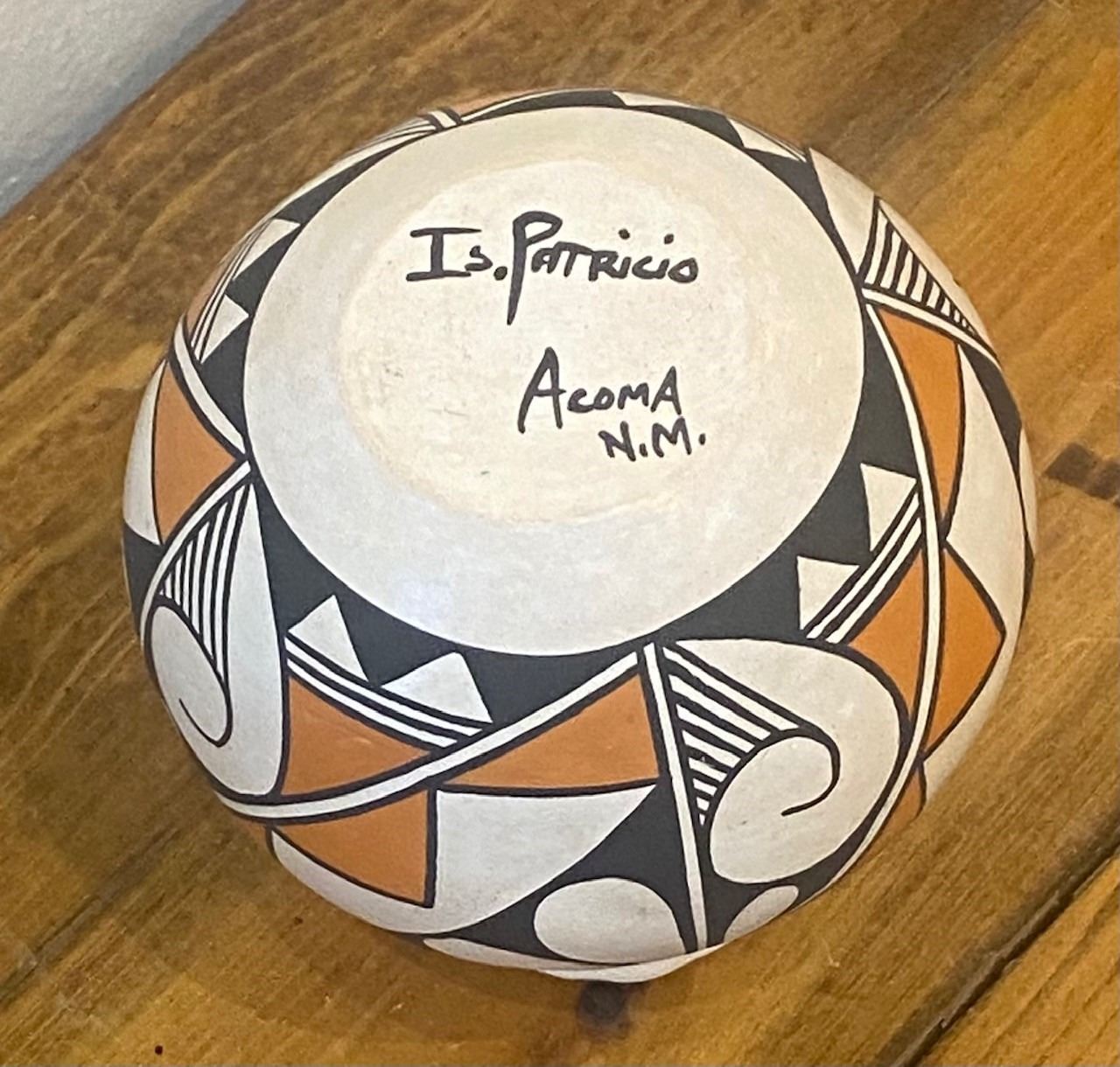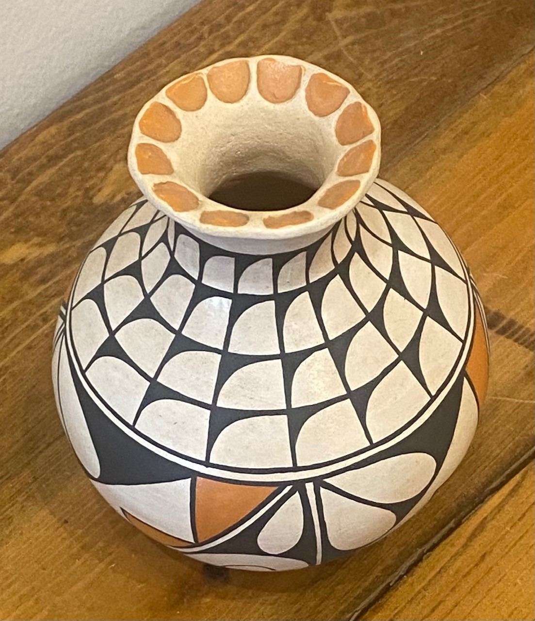 Beautiful done Polychrome Jar signed Is (Israel) Patricio. Has great designs with a nice Pie Crust Rim.