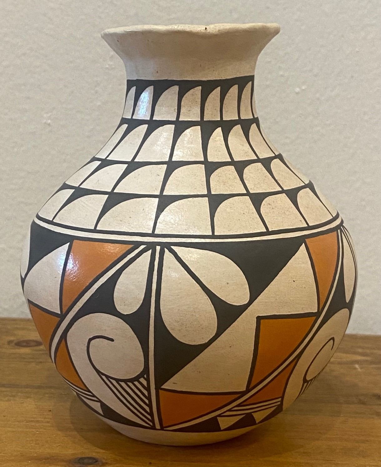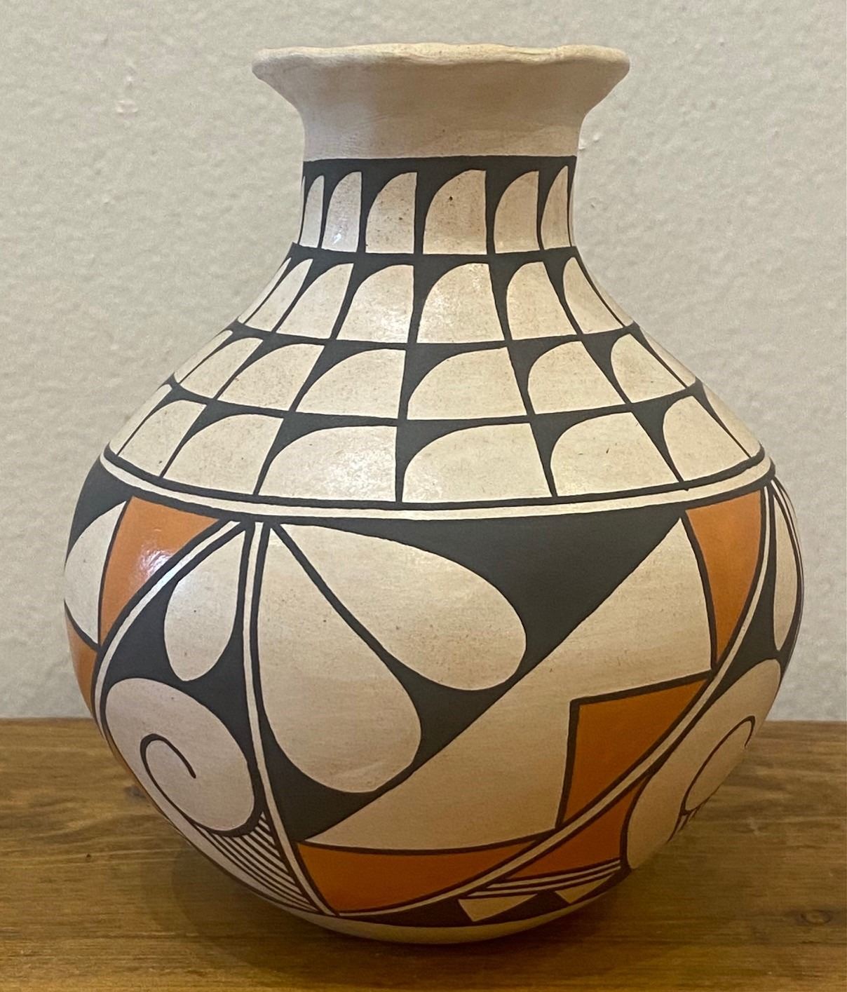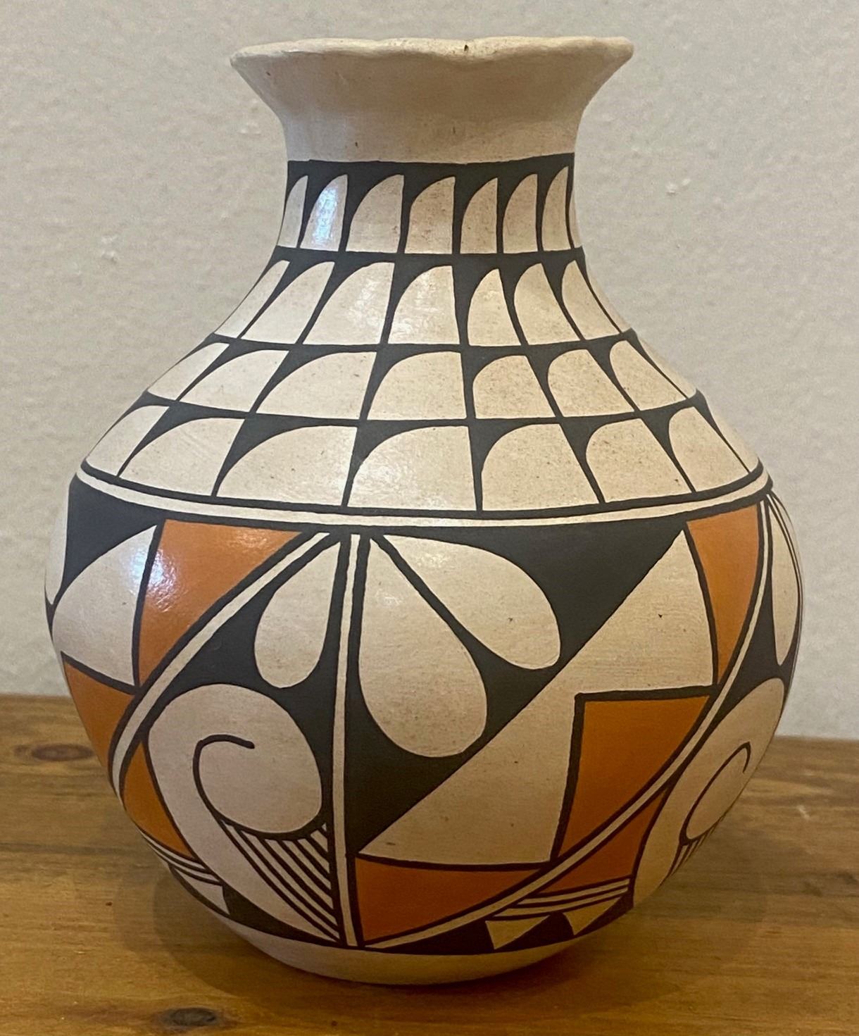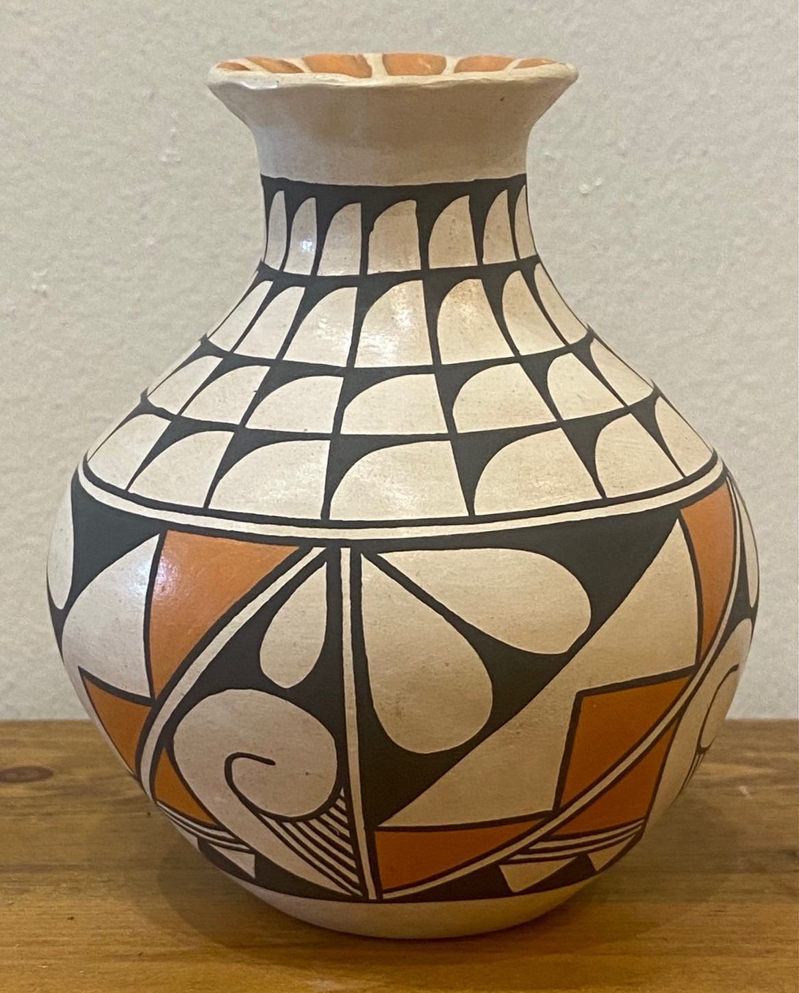 Beautiful done Polychrome Jar signed Is (Israel) Patricio. Has great designs with a nice Pie Crust Rim.