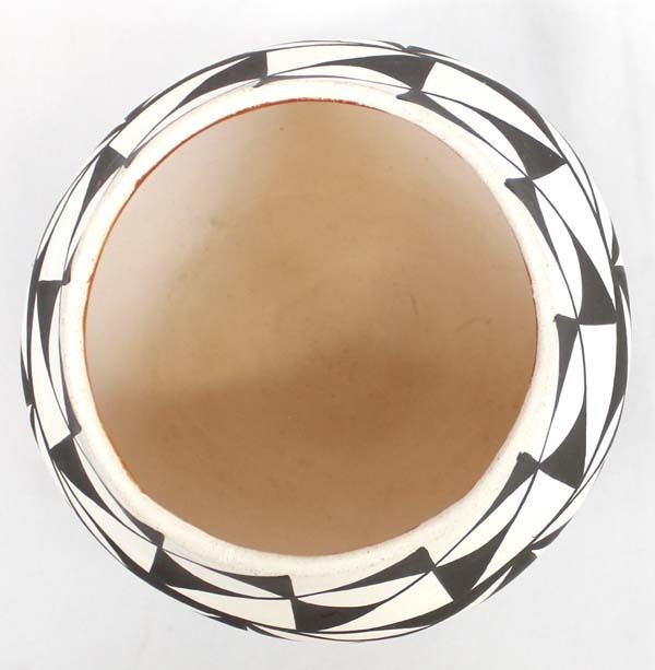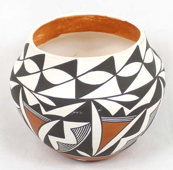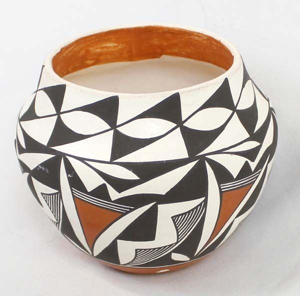 Native American Acoma Polychrome Pottery Bowl by C. Chino, measures 4.5'' x 5.5'' and is signed on the bottom, does have paint loss, possible artist Carrie Chino Charlie (1925-2012), FYI: ''Carrie Chino Charlie made her home on the Pueblo and her life-long pleasure was caring for her family and making exquisite pottery. Carrie started making pottery in the 1940s and is best known for her traditional and contemporary polychrome, black-on-white fineline, whiteware jars and bowls.''
