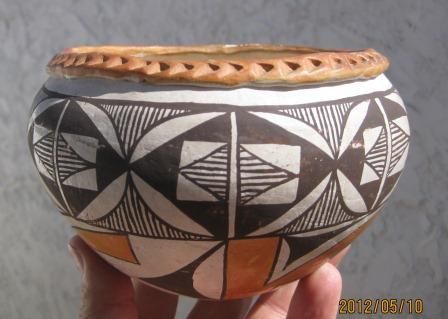 Acoma Bowl, New Mexico Polychrome 6x 4 inches. Signed Chet Zdelfonso. Good. Tiny damage on rim Shipping $15.00