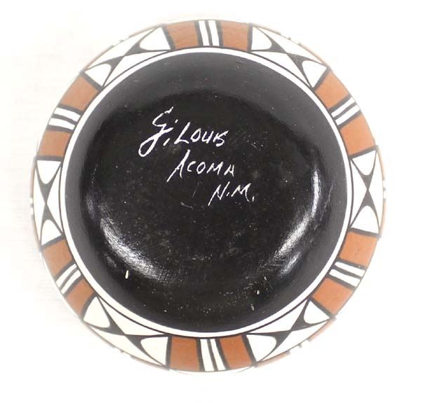 Native American Acoma Polychrome Ceramic Pottery Bowl by Gary Yellowcorn Louis, measures 2.5'' x 3.5'' and is signed on the bottom