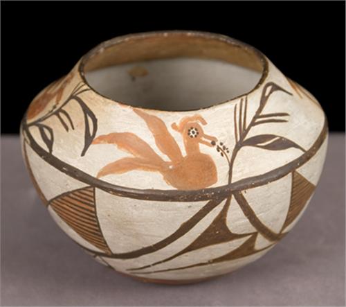 Acoma Pottery Bowl. 4 1/2" x 6 1/2". Red and black designs on white slip. c. 1930s. Excellent condition. (est $300-500)