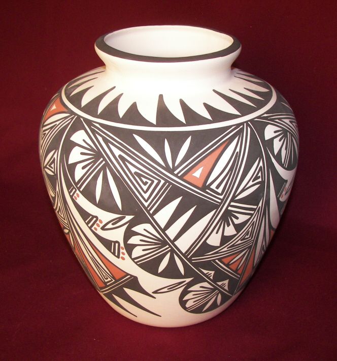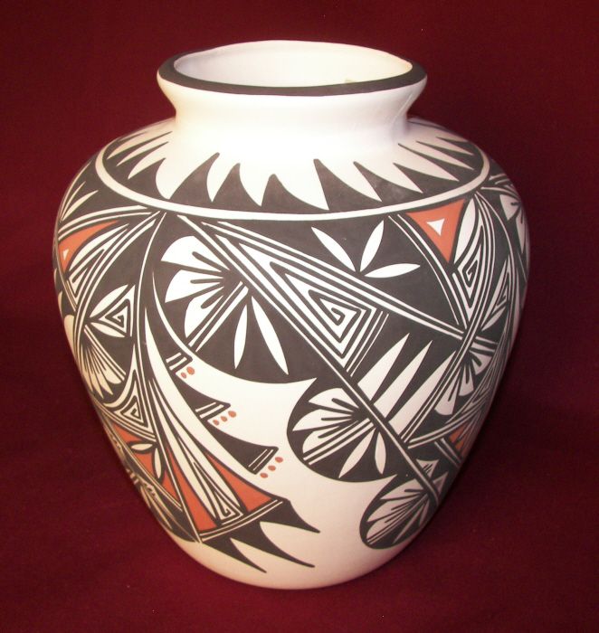 (7709) Acoma Pottery, Classic Olla With Polycrome Designs C. Lewis And A. Faustine, Acoma, N. M., 8" Dia. By 10" Tall, Signed Bottom, Slipcast Greenware