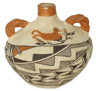 Traditional polychrome vessel with bird figure; very good condition. 6" x 6-1/2"